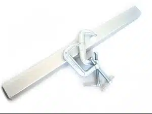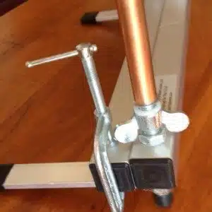 Bevestig deze extra balk aan de achterkant van de onderste balk van uw weefgetouw met de meegeleverde klemmen.