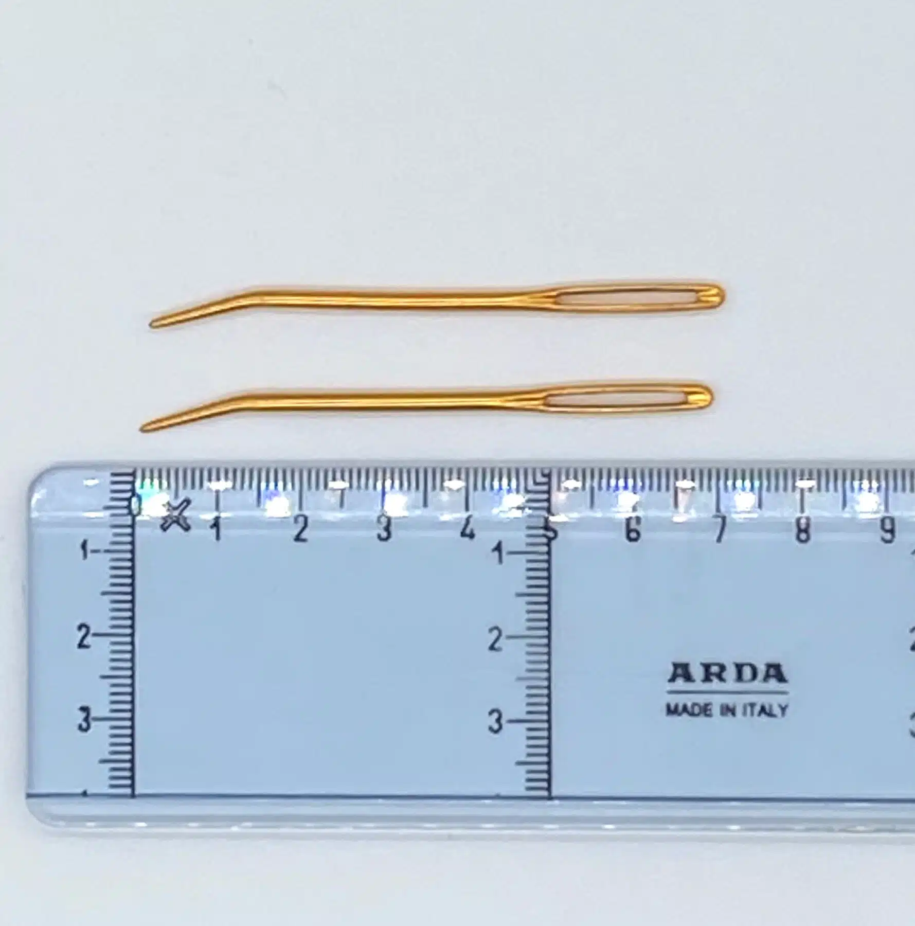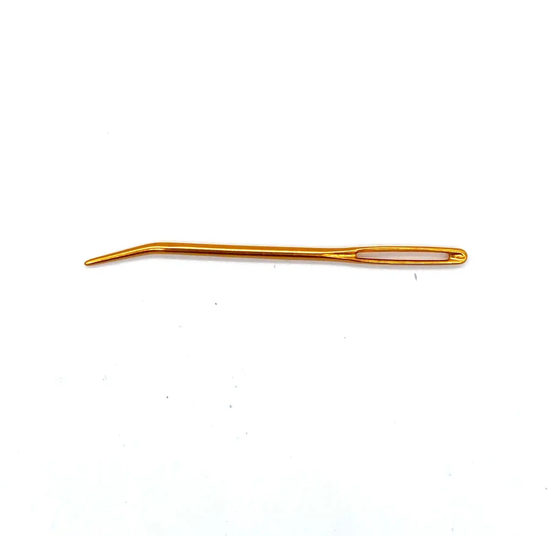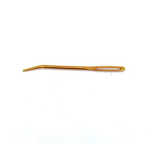 Met deze gebogen inox naald, in goudkleur omwille van het contrast bij gebruik, kan je perfecte blindzomen an ander fijn naaiwerk verrichten. Totale lengte 7 cm, waarvan ruim 1,5 cm gebogen.