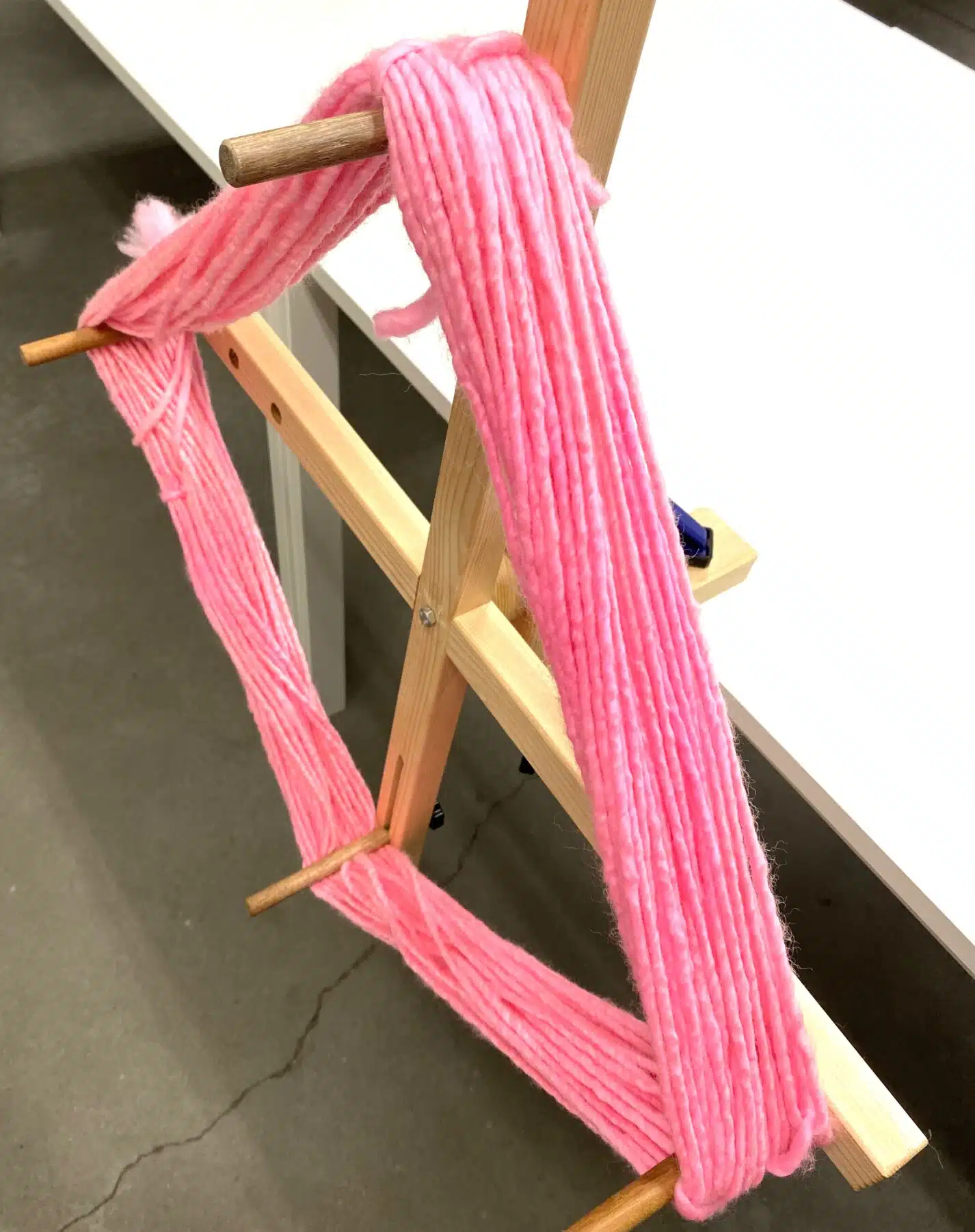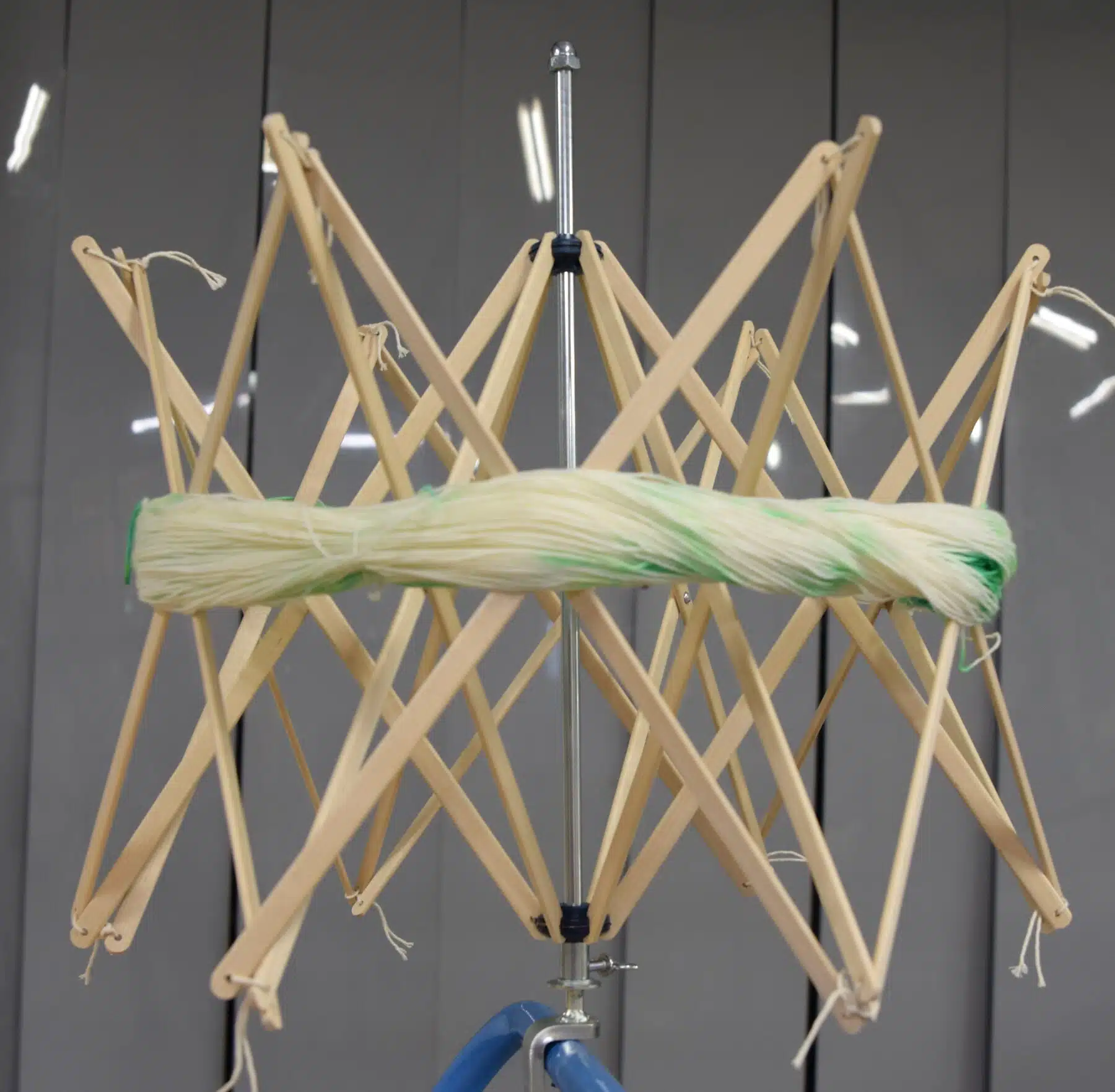 Wanneer je dus een mooie streng garen koopt, of er zelf eentje verft, kan je dit makkelijk en snel op een bol draaien.