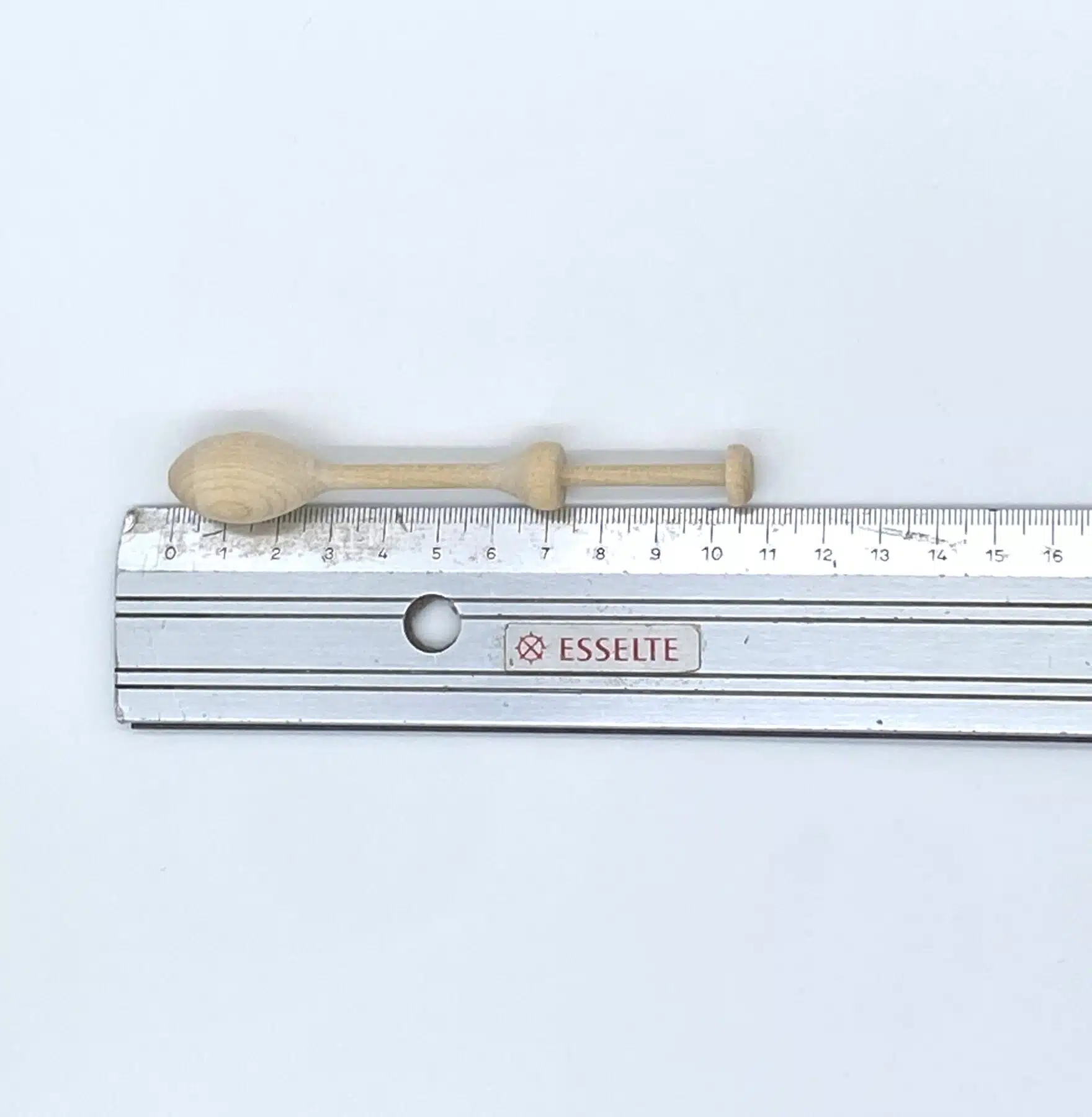 – met stompe bol en fijne punt vooraan, totale lengte van 15,5 cm, waarop je een grotere hoeveelheid garen kan wikkelen, maar meer ruimte nodig hebt om door te weven.